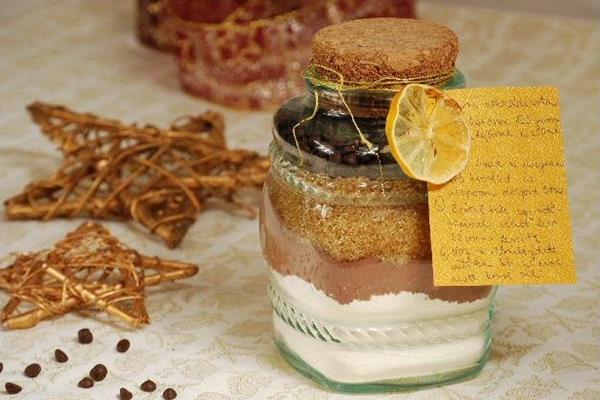 Többféle recept található a neten ehhez az ötletes gasztroajándékhoz, muffinok, kekszek mellett egyszerű csokoládétorta száraz összetevői is elhelyezhetők az üvegben.