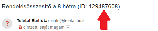 A rendelés azonosítójához nyisd meg postafiókodat, keresd meg a Teletáltól kapott e-mailt, amely összegzi a rendelésed. Az azonosítót a tárgy sorban találod.
